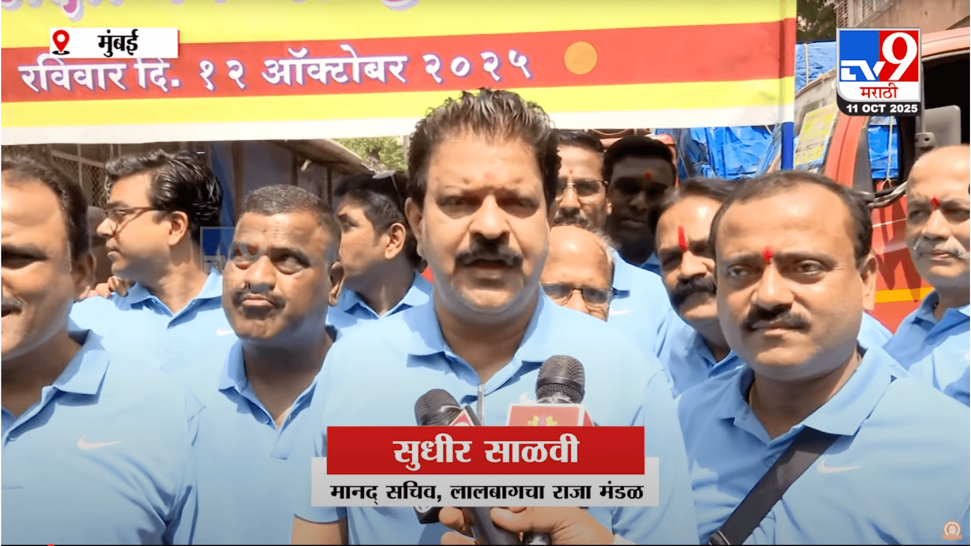 Distribution of complete educational materials to students in flood-affected villages of Marathwada by the Lalbaugcha Raja Sarvajanik Ganeshotsav Mandal.