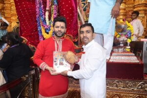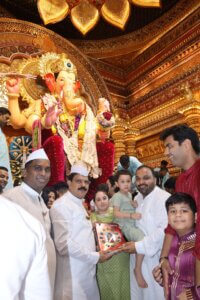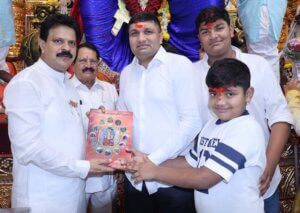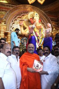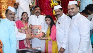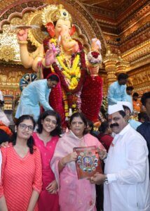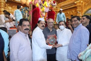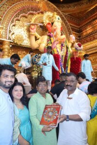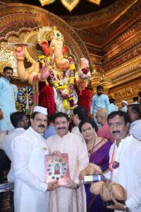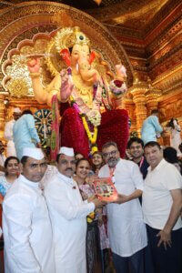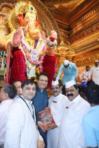 Lalbaugcharaja : A cheque of Rs. 50 lakh is being handed over to the Honourable Chief Minister of Maharashtra